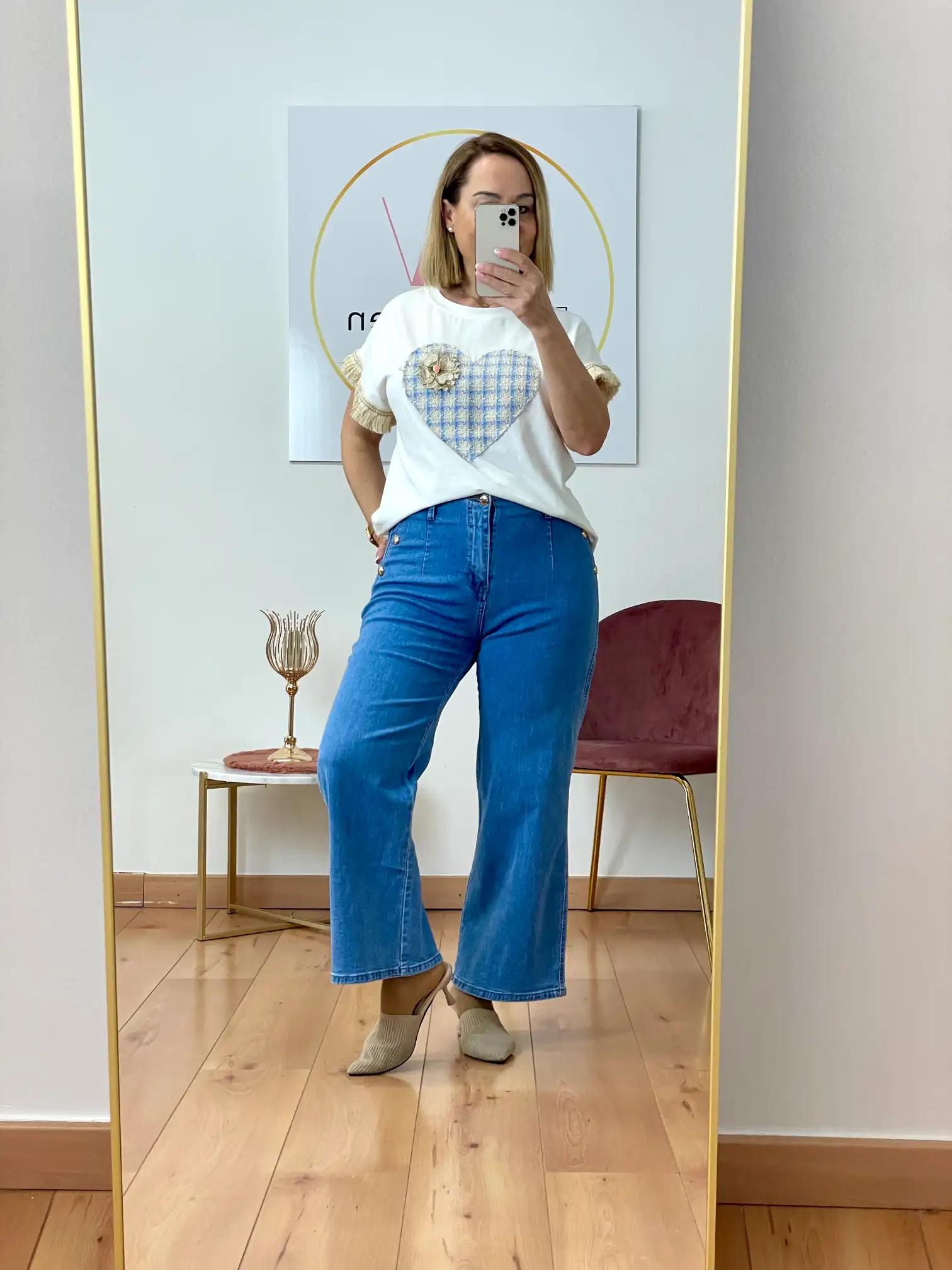 Nada más clásico y cómodo que un par de jeans y una camiseta básica. Opta por unos jeans de corte recto o boyfriend para un estilo desenfadado y combínalos con una camiseta suelta en tu color favorito. Completa el look con unas zapatillas blancas y un bolso cruzado para un toque informal y chic.