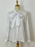 Camisa blanca básica con una lazada en el cuello que le da un toque muy especial que te realzará cualquier look