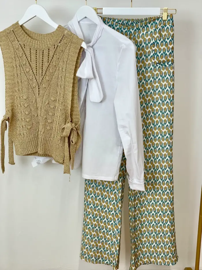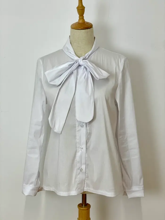 Camisa blanca básica con una lazada en el cuello que le da un toque muy especial que te realzará cualquier look