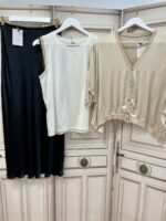 Camiseta básica con detalles en las mangas con brillo en tonos beige y negro.