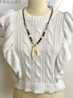 Chaleco punto blanco con volante en los hombros. Tiene trenzas en la parte delantera