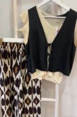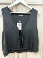 Este chaleco satinado te va a encantar. Lo vas a poder llevar abierto o cerrado como si fuera un top.