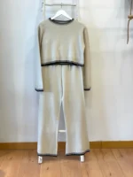 El jersey mide de largo 42 cm y puedes llevarlo solo o con una camisa bajo. Tiene las mangas ligeramente acampanadas y tiene un pespunte de contraste de color tanto en el cuello como en los puños.