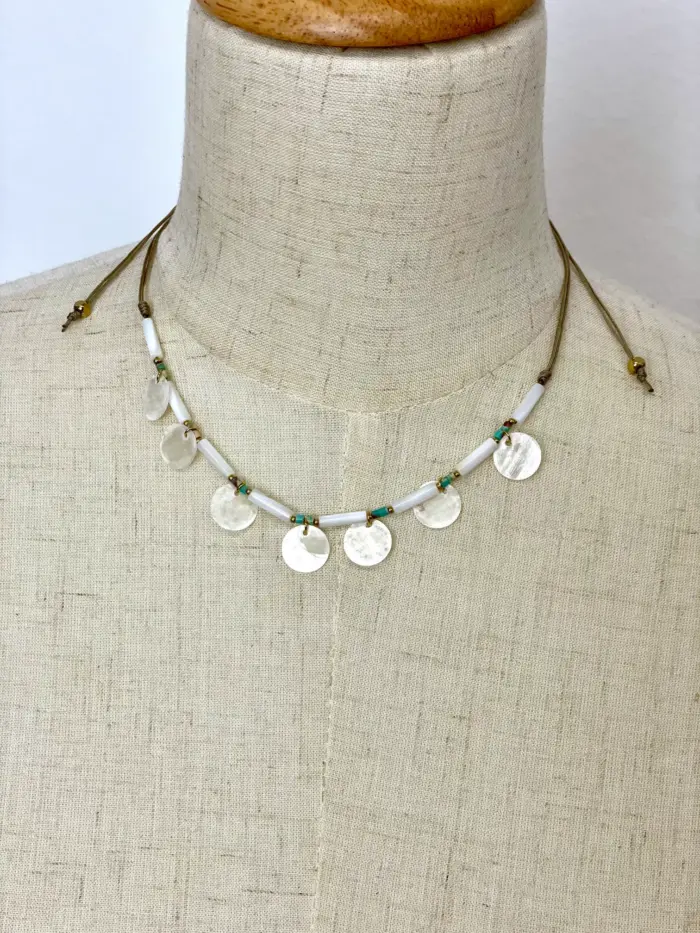 Gargantilla con chapitas nacaradas y piedras pequeñas en turquesa