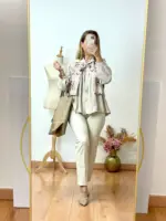 Leggins con elastán. Lleva trabillas para cinturón y va con goma invisible en la cintura. Tiene falsos bolsillos tanto en los lados como en la parte trasera. Largo aproximado desde la cintura 98cm