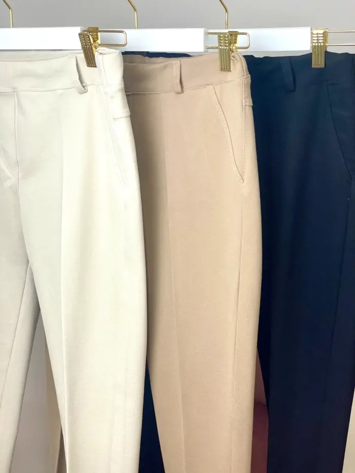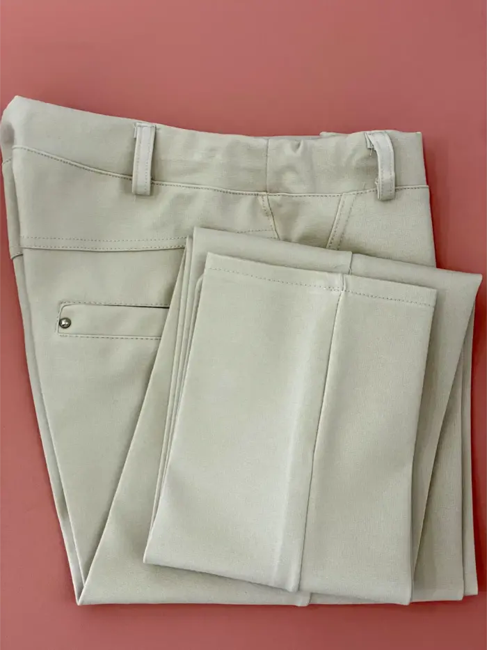 Leggins con elastán. Lleva trabillas para cinturón y va con goma invisible en la cintura. Tiene falsos bolsillos tanto en los lados como en la parte trasera. Largo aproximado desde la cintura 98cm