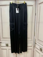 Pantalón satinado estilo cargo. Lleva la cintura engomada y un cordón para ajustar. Tiene bolsillos a los lados.