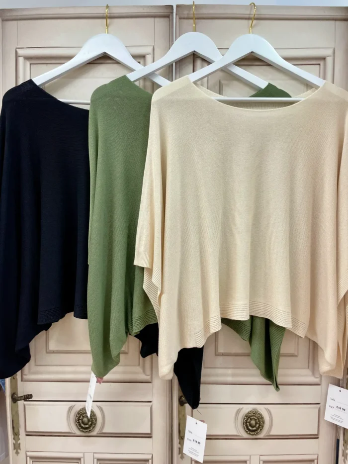 Poncho de punto. Es muy amplio y súper combinable con cualquier outfit
