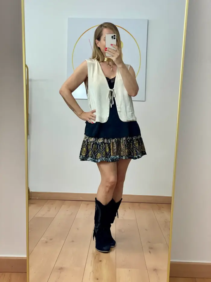 Top de lycra con forma acampanada. Tiene disponible el pantalón a juego. Da bastante talla